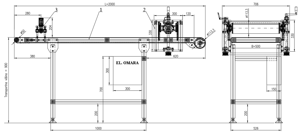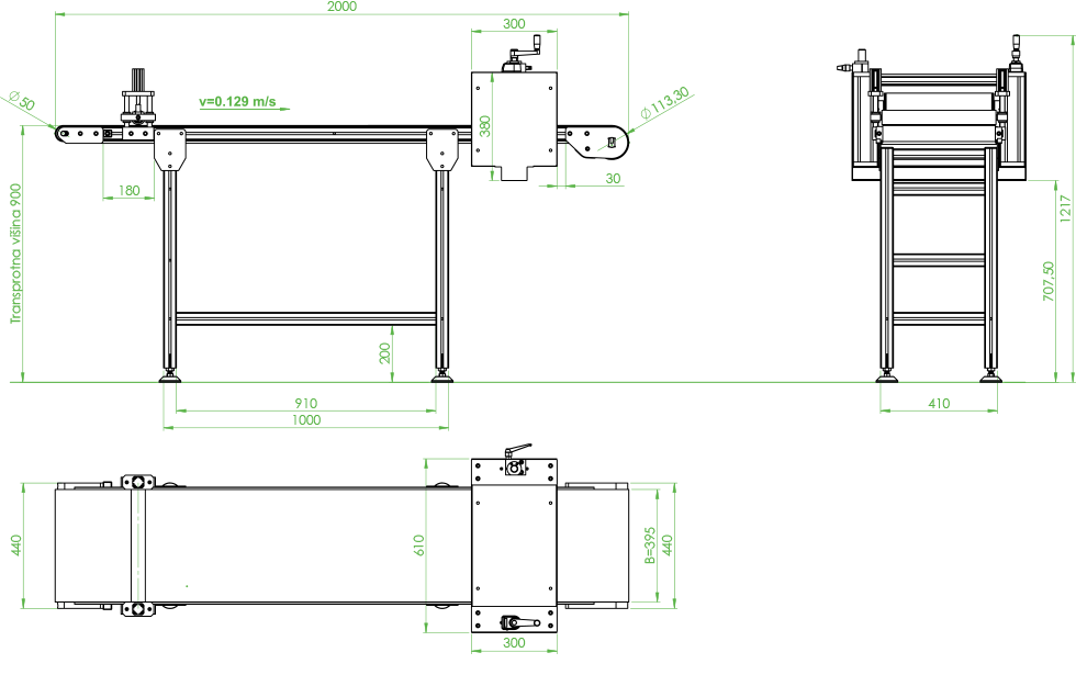 Built up from light aluminum profiles. Rollers with integrated engine enable equal rotation. Adjustable speed control and built in safety system.