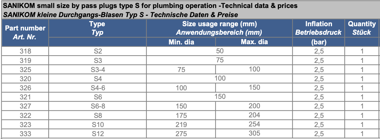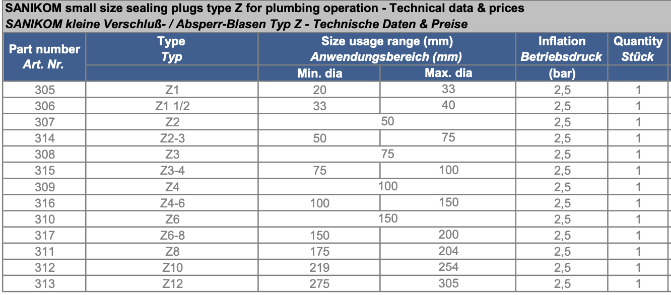 These plugs are suitable for testing tightness of plumbing and sewers with air or water in line with the European standard EN 1610. Their use is simple and all the work can be done from one inlet opening gully only. |